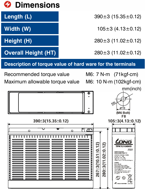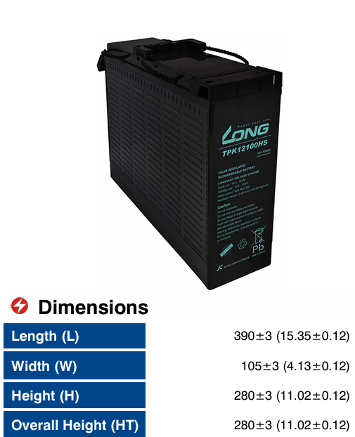 ẮC QUY KÍN KHÍ (VRLA AGM) LONG 12V-100AH (20HR), TPK12100HS, F8-M6