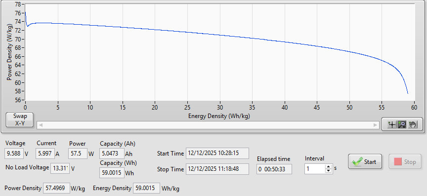 6A to 9.60V | Duration 00:50:33 3030s 5.0473Ah 59.0015Wh |