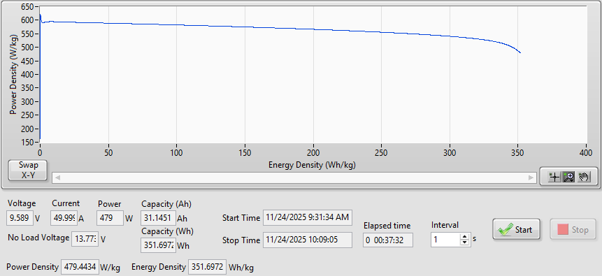 50A to 9.60V | Duration 00:00:00 ~s ~Ah ~Wh |