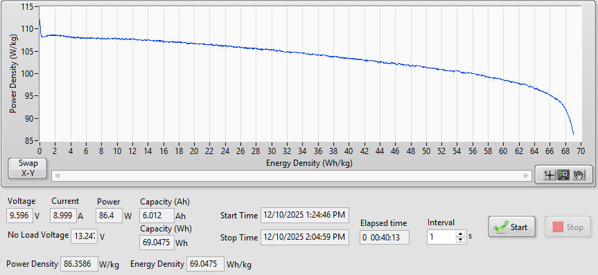 9A to 9.60V | Duration 00:40:13 2405s 6.012Ah 69.0475Wh |